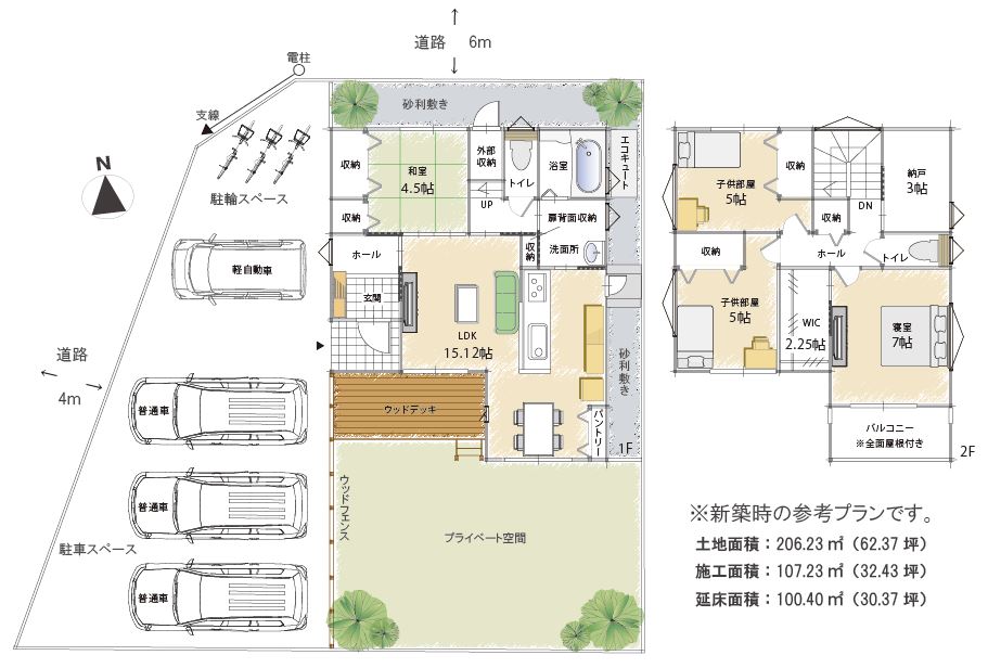 ※延床面積とは・・・簡単にいうと玄関ポーチやバルコニーなどを除く、居住スペースの面積になります。